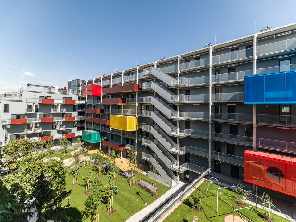 In 2019, 5,000 apartments – including more than 2,000 subsidized apartments – will be available for around 13,000 people in the Sonnwendviertel district. A large number of the housing projects have been developed in cooperation with wohnfonds_wien. From 2009 to 2016 three developers’ competitions (Bauträgerwettbewerbe) were held for this area. Community group projects with 65 units were assessed by the Land Advisory Board (Grundstücksbeirat) and thereafter wohnfonds_wien launched a block renovation initiative adjacent to the new development district in order to promote the revitalisation of old housing stock. At the centre of the new city district is the pedestrian zone with local businesses, meeting points for the young and old, a library and an adult education centre. The Helmut Zilk Park, which is around 7-hectres in size and includes a playground, communal gardens and a restaurant, will provide rest and relaxation within green surroundings.